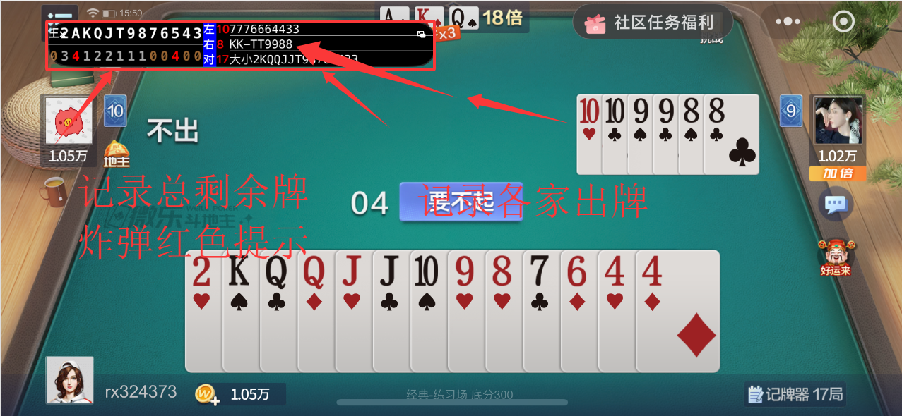 记牌器最核心的就是 “准”,这款用的是 AI 图像识别技术,经过上亿条数据训练,记牌精准度能到 99%。它会自动记着谁出了什么牌,还能算出剩下的牌有哪些,让你整局都清清楚楚。要是有炸弹,它还会用红色标出来提醒你,出牌心里更有谱。